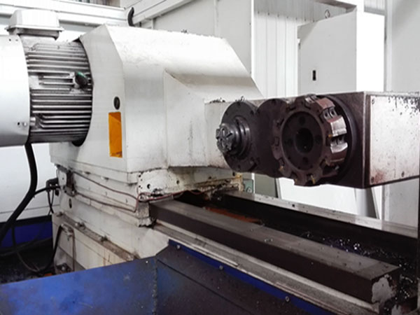 火車鉤尾框承載面加工專機(jī),本機(jī)床為臥式單面布置,前面數(shù)控移動(dòng)工作臺(tái)上安裝有回轉(zhuǎn)夾具,后面數(shù)控移動(dòng)工作臺(tái)上配有專用雙軸銑削動(dòng)力頭。夾具具有自動(dòng)回轉(zhuǎn)及回轉(zhuǎn)到位后自動(dòng)鎖緊功能,回轉(zhuǎn)角度由固定擋鐵控制,更換品種時(shí)需更換擋鐵塊。本機(jī)床主要用于13B、17型、力拓40T鉤尾框承載面的銑削加工,生產(chǎn)節(jié)拍:4分鐘/件。工件以底面、側(cè)面及尾部定位,液壓油缸夾緊。人工吊裝上下料,一次一件,液壓夾緊,數(shù)控系統(tǒng)控制,并配有獨(dú)立的液壓站、電氣柜、集中潤滑裝置。本機(jī)床加工剛性好,并適合多品種加工。